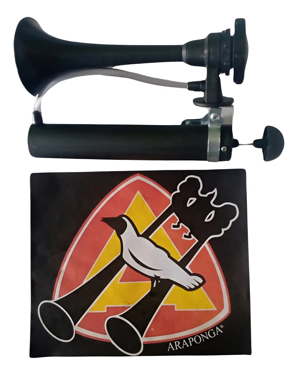 Composta de uma corneta de 230mm e uma bomba de 250mm, a buzina portatil Araponga possui som agudo para bicicleta para jovens. Haste fabricada em aço zincado resistente a ferrugem.